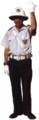 Braço levantado, com movimento de antebraço da frente para a retaguarda e a palma da mão voltada para trás.