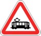 Indicação de cruzamento ou entroncamento com via em que transitam veículos sobre carris; este sinal não deve ser utilizado nas passagens de nível.